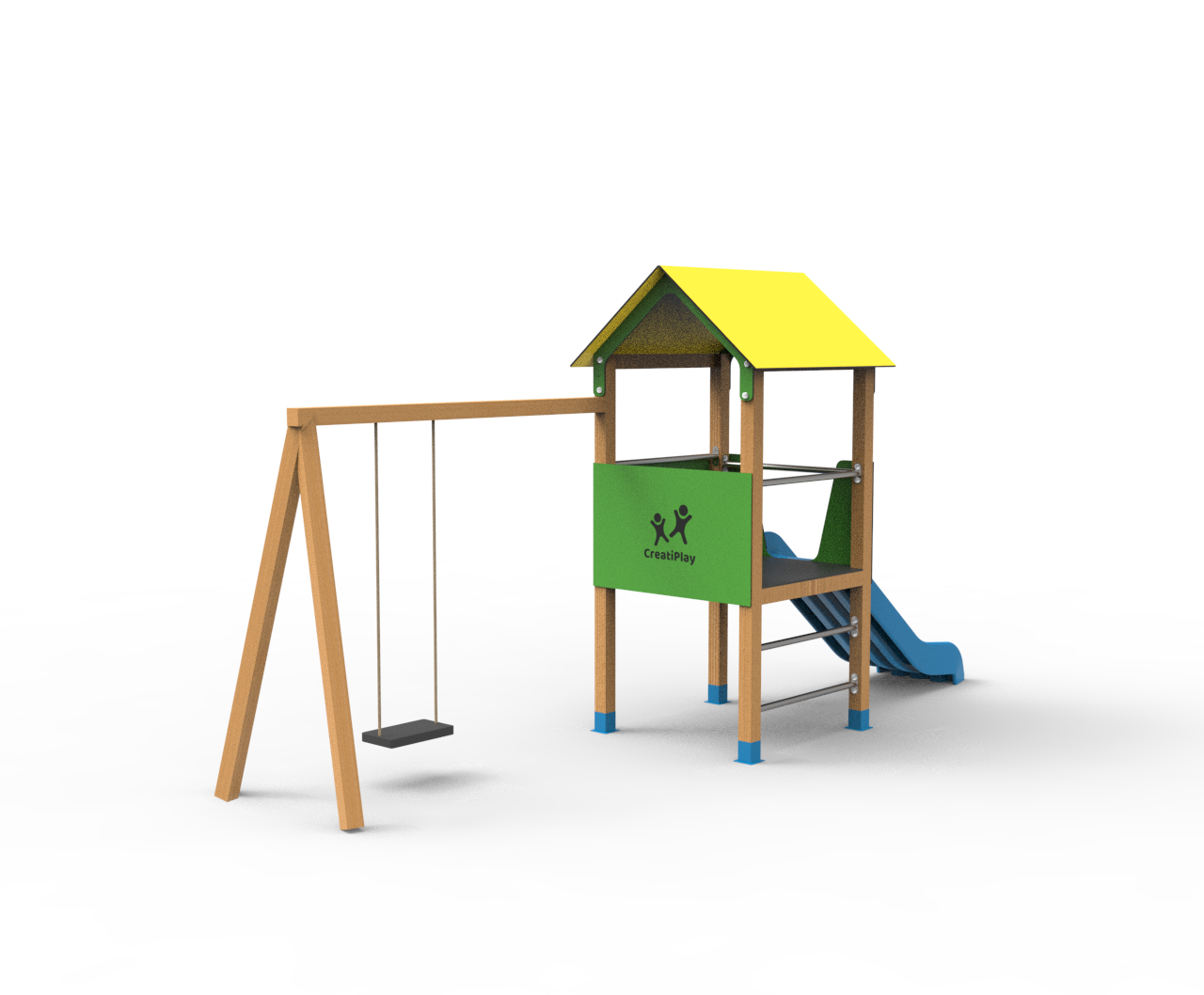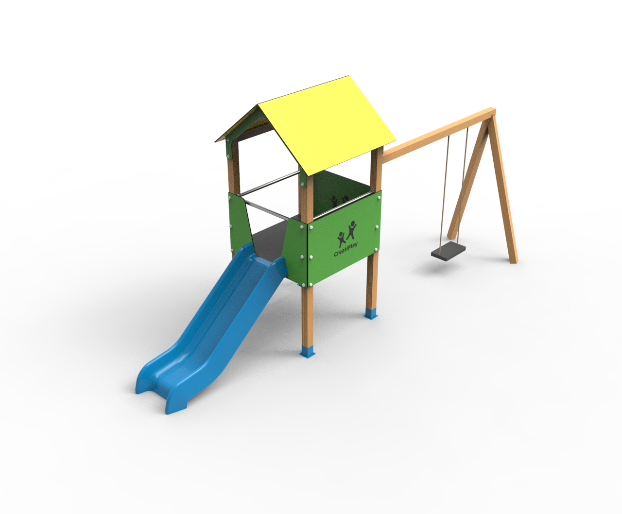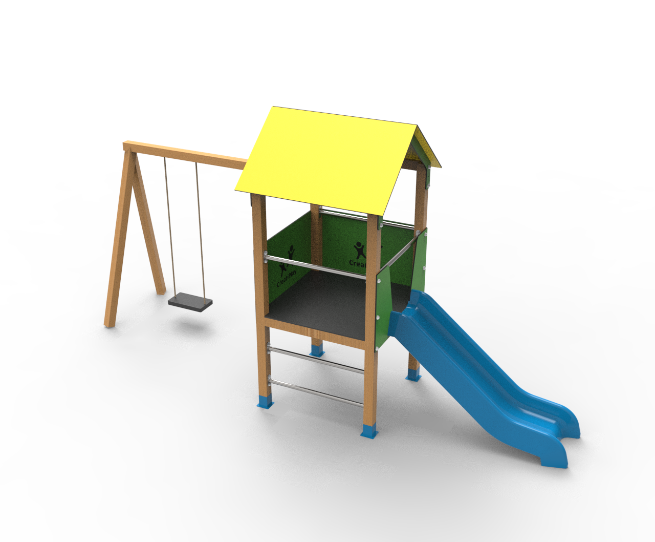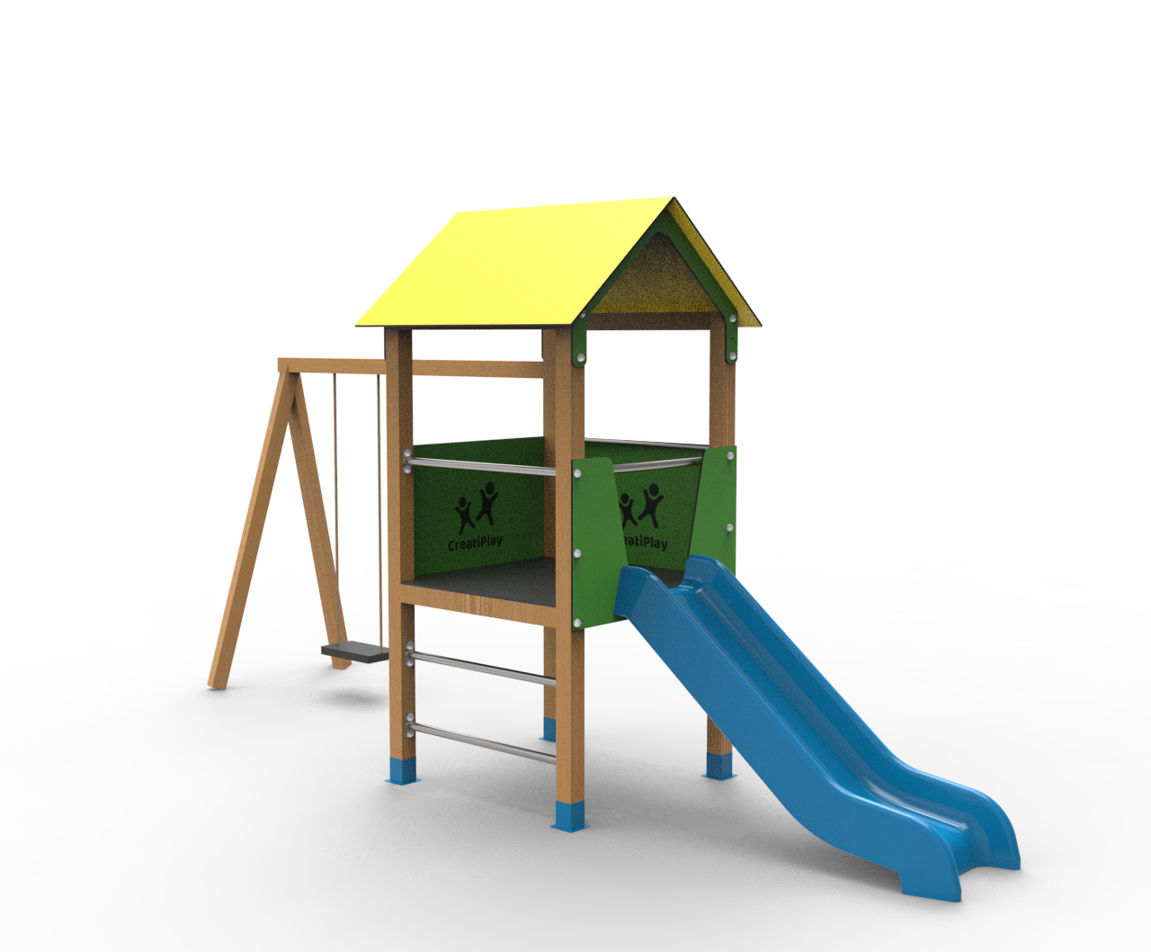 El producto es totalmente personalizable, el color de los toboganes, los paneles laterales y el techo. La estructura puede ser de madera tratada, acero galvanizado pintado al horno o de madera plástica reciclada