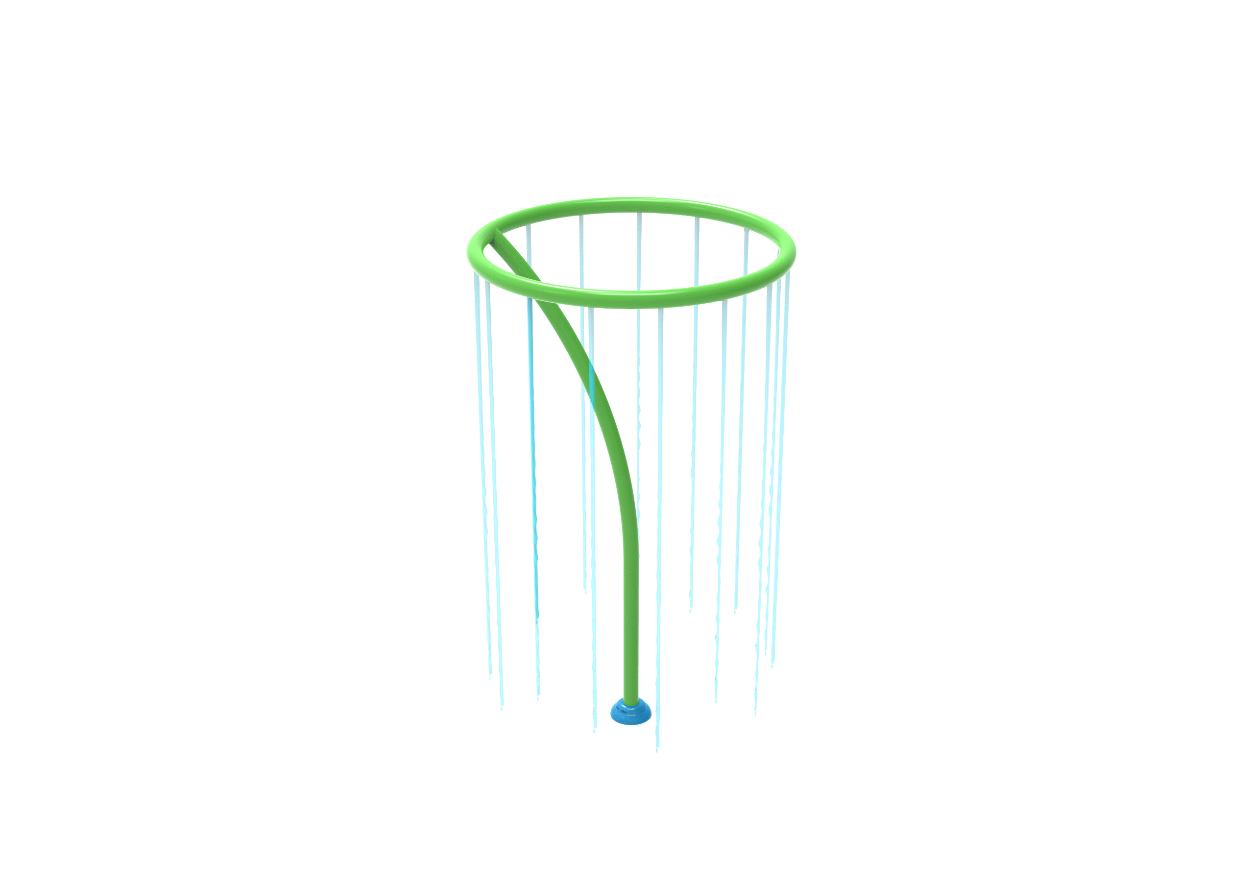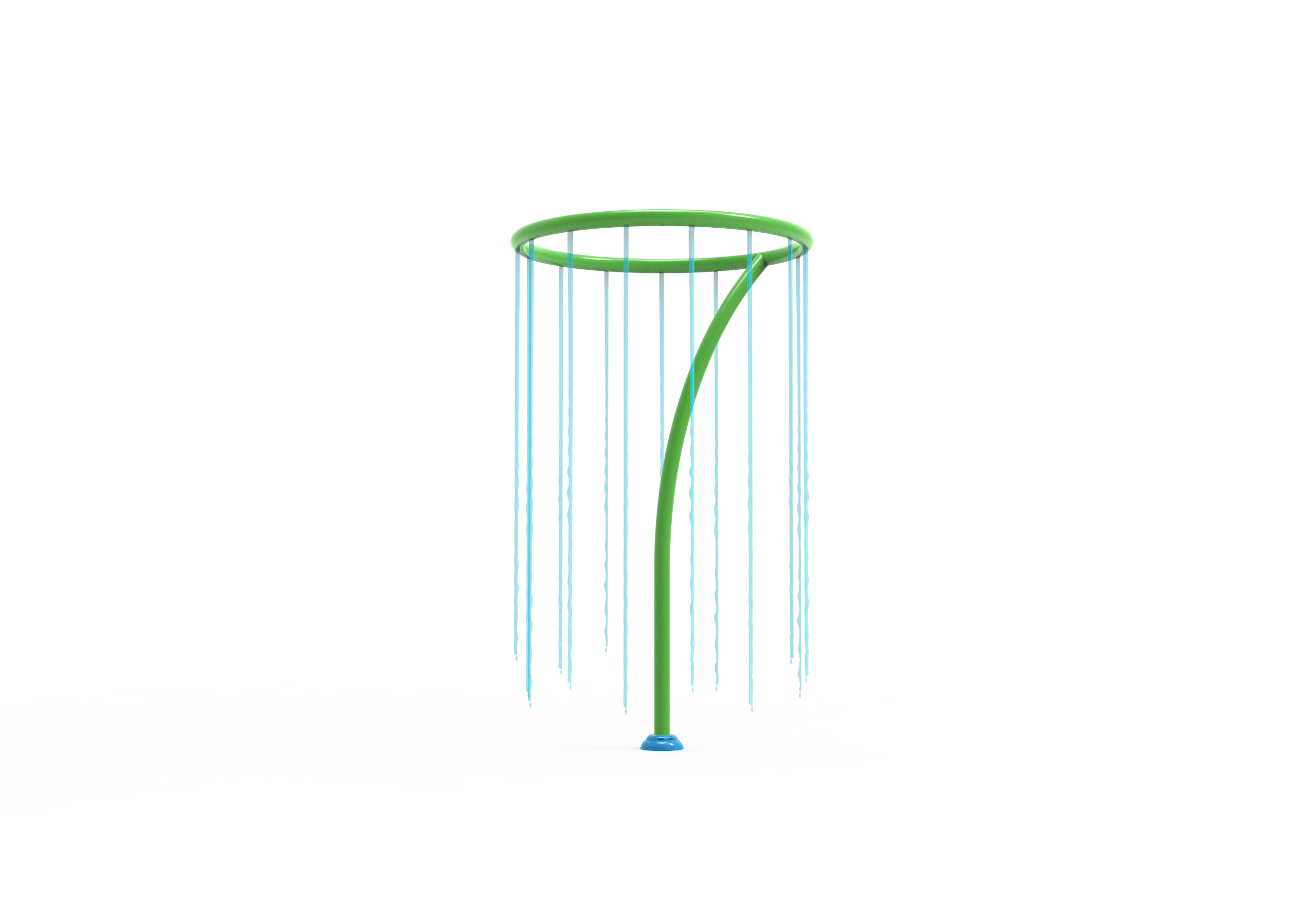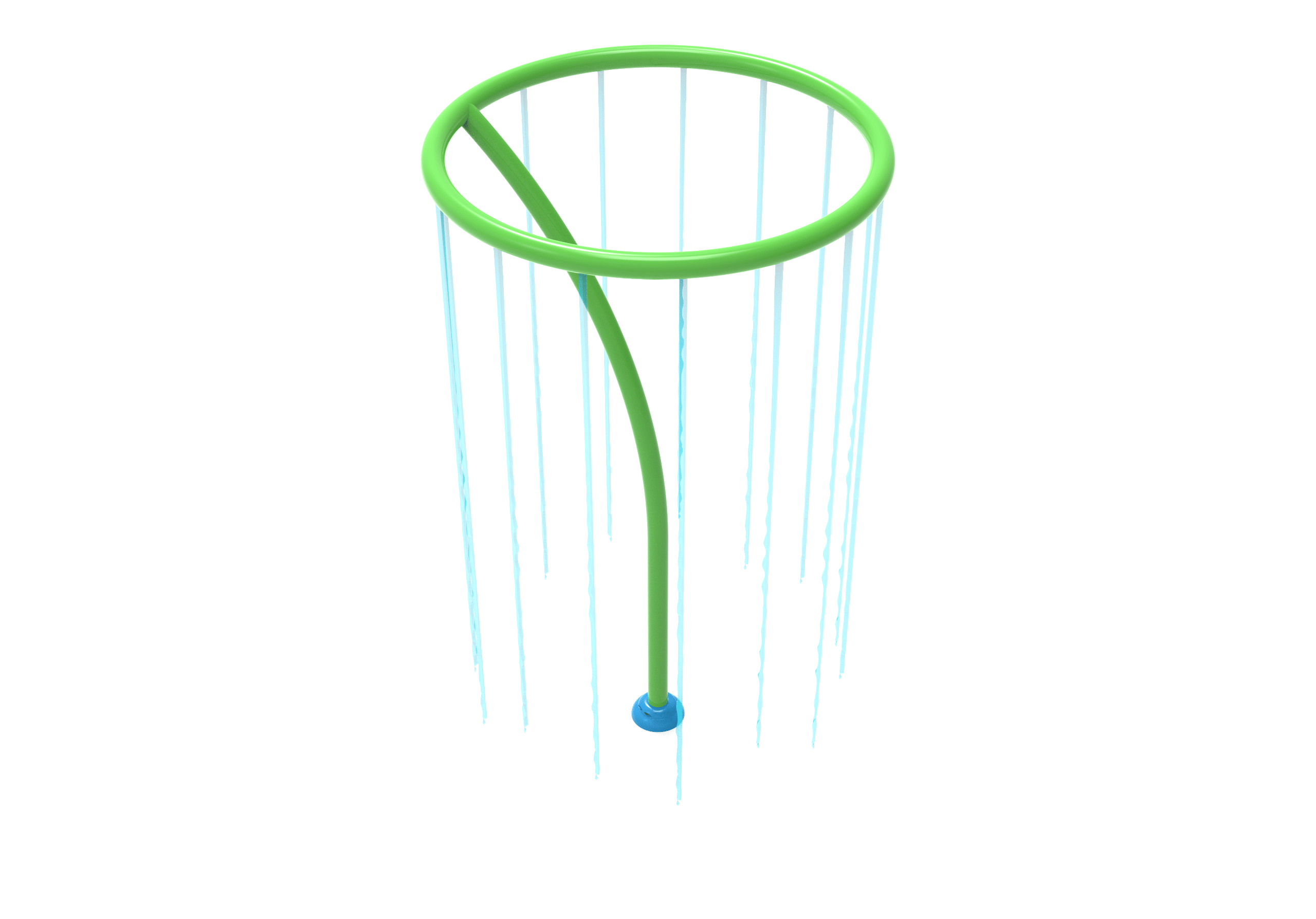 El UFO es un juego acuático que transforma cualquier splash park en una experiencia sorprendente y envolvente. Su diseño consiste en un aro elevado del que cae una cortina de agua vertical, creando un cilindro refrescante en el que los niños pueden entrar, esconderse y jugar bajo una lluvia constante.
